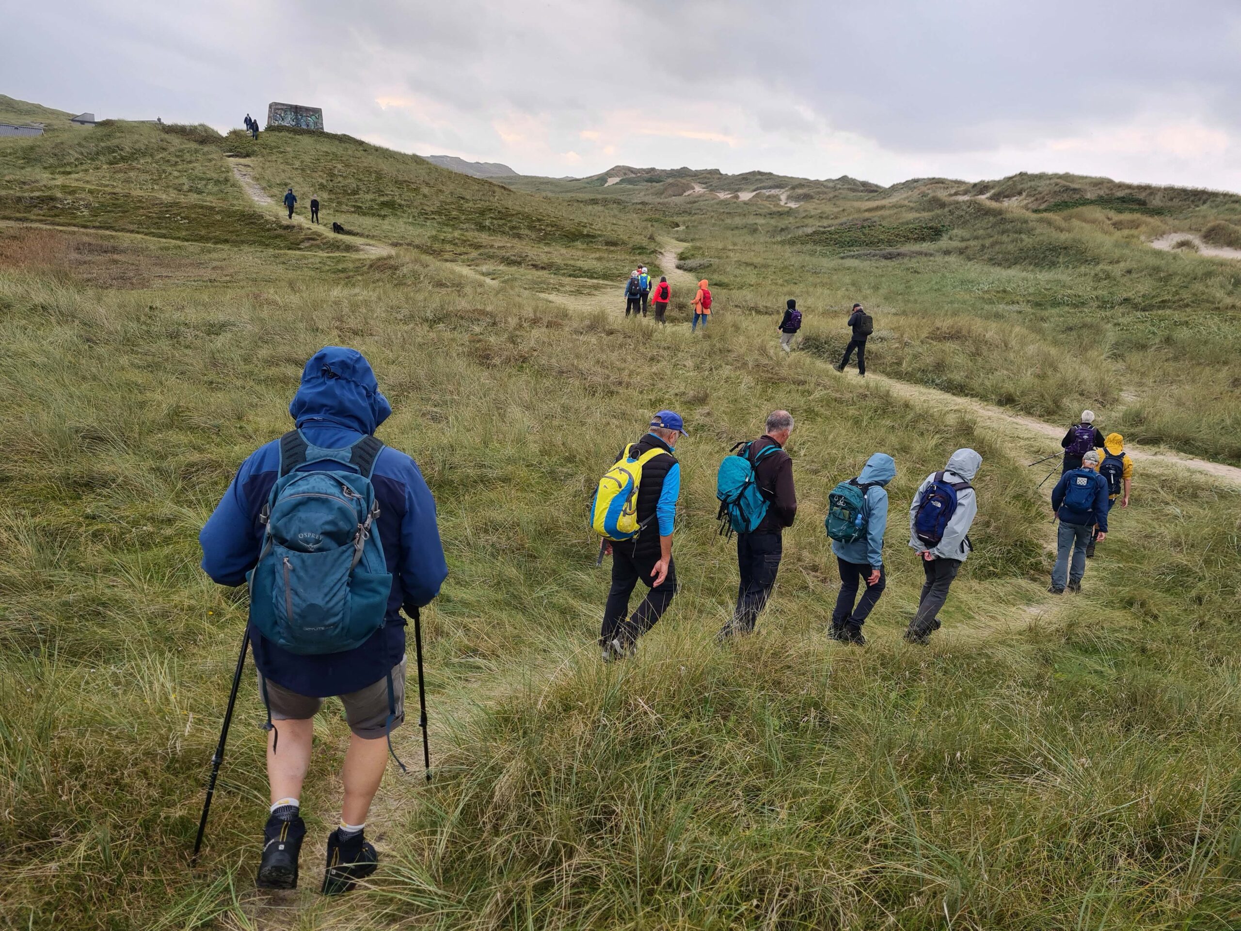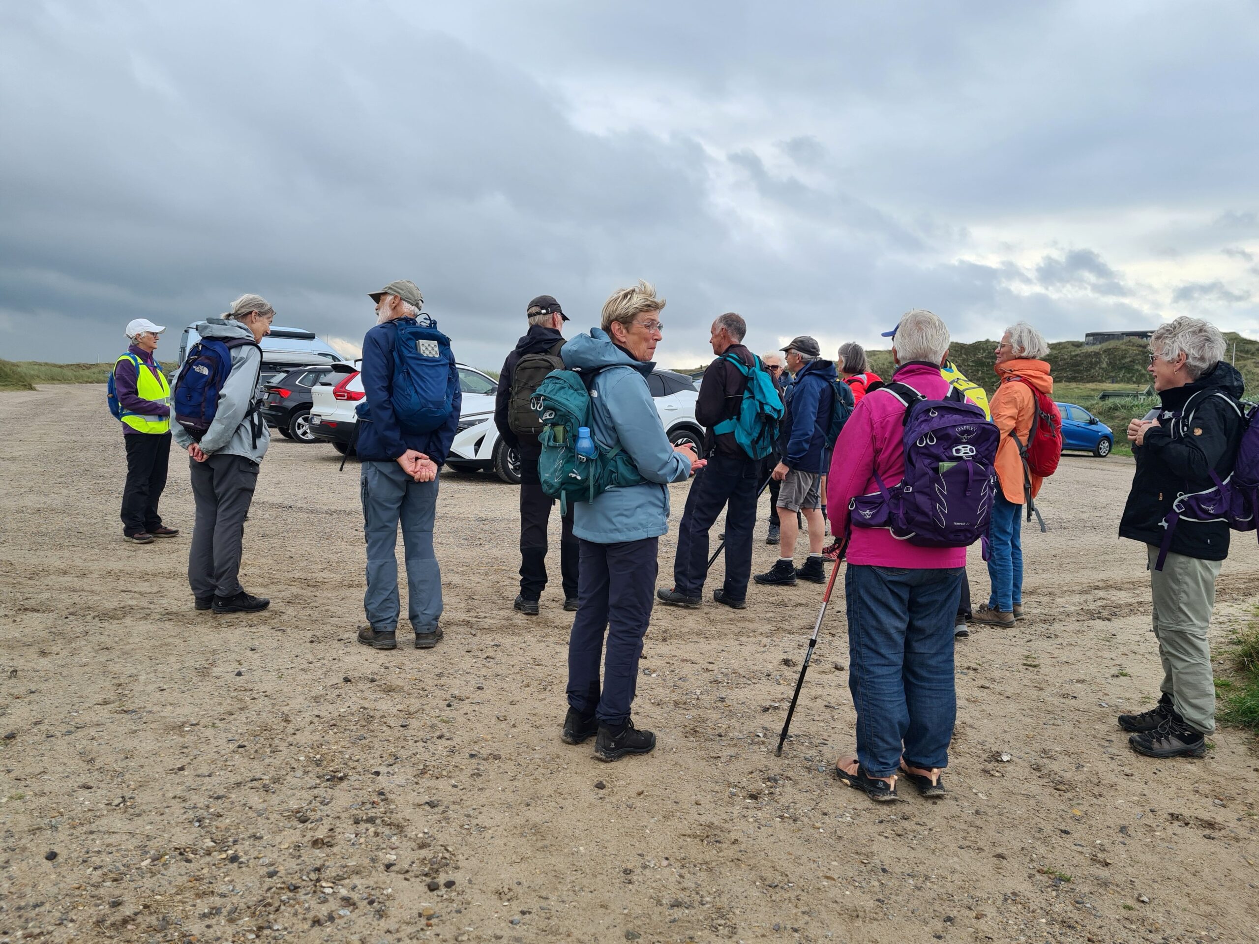 Inden start bød turlederne velkommen og Anne Marie fortalte om dagens tur. Erna gik forrest og Anne Marie var dagens bagstopper. En dejlig og smuk tur langs stranden og gennem klitterne.