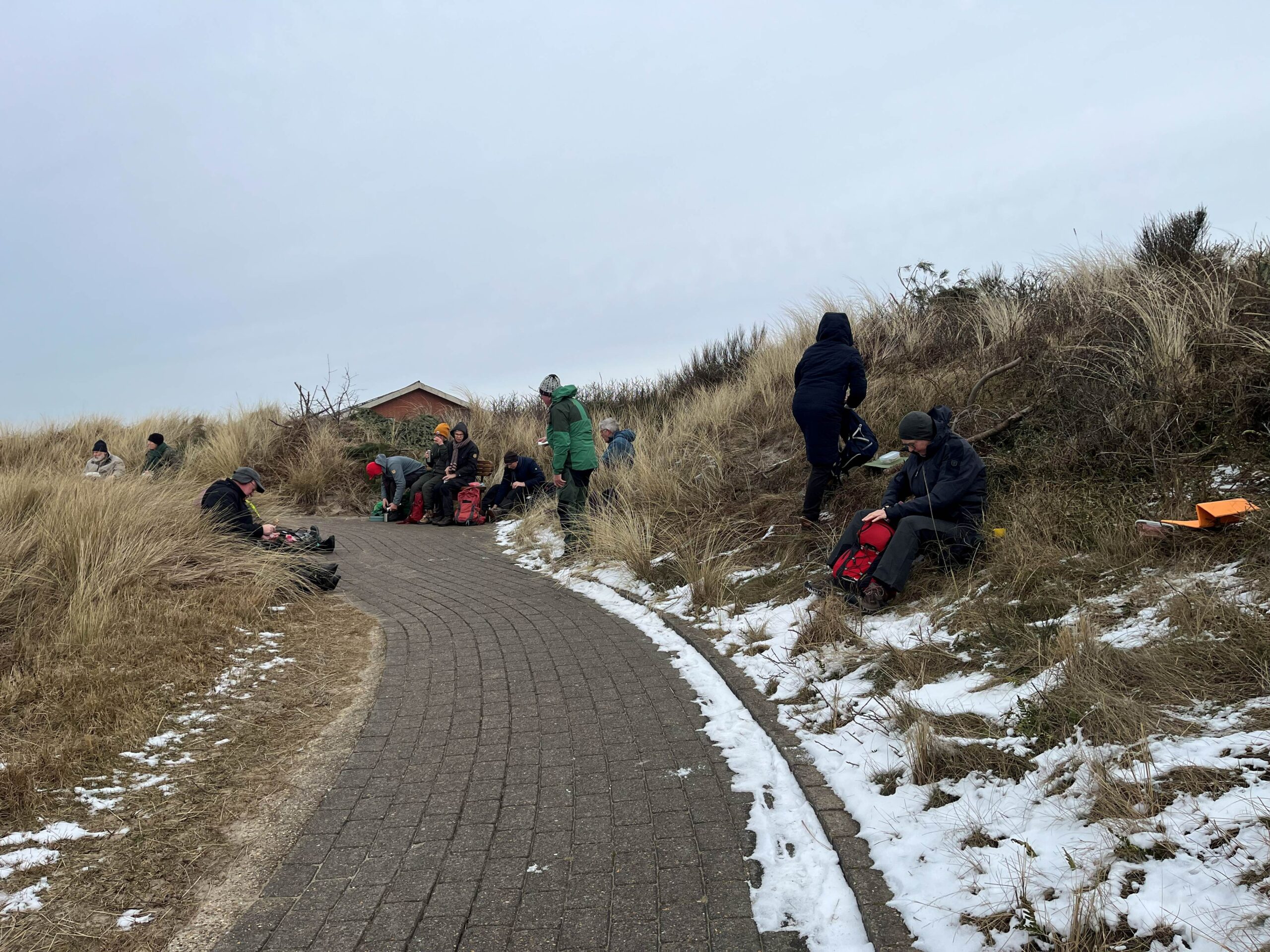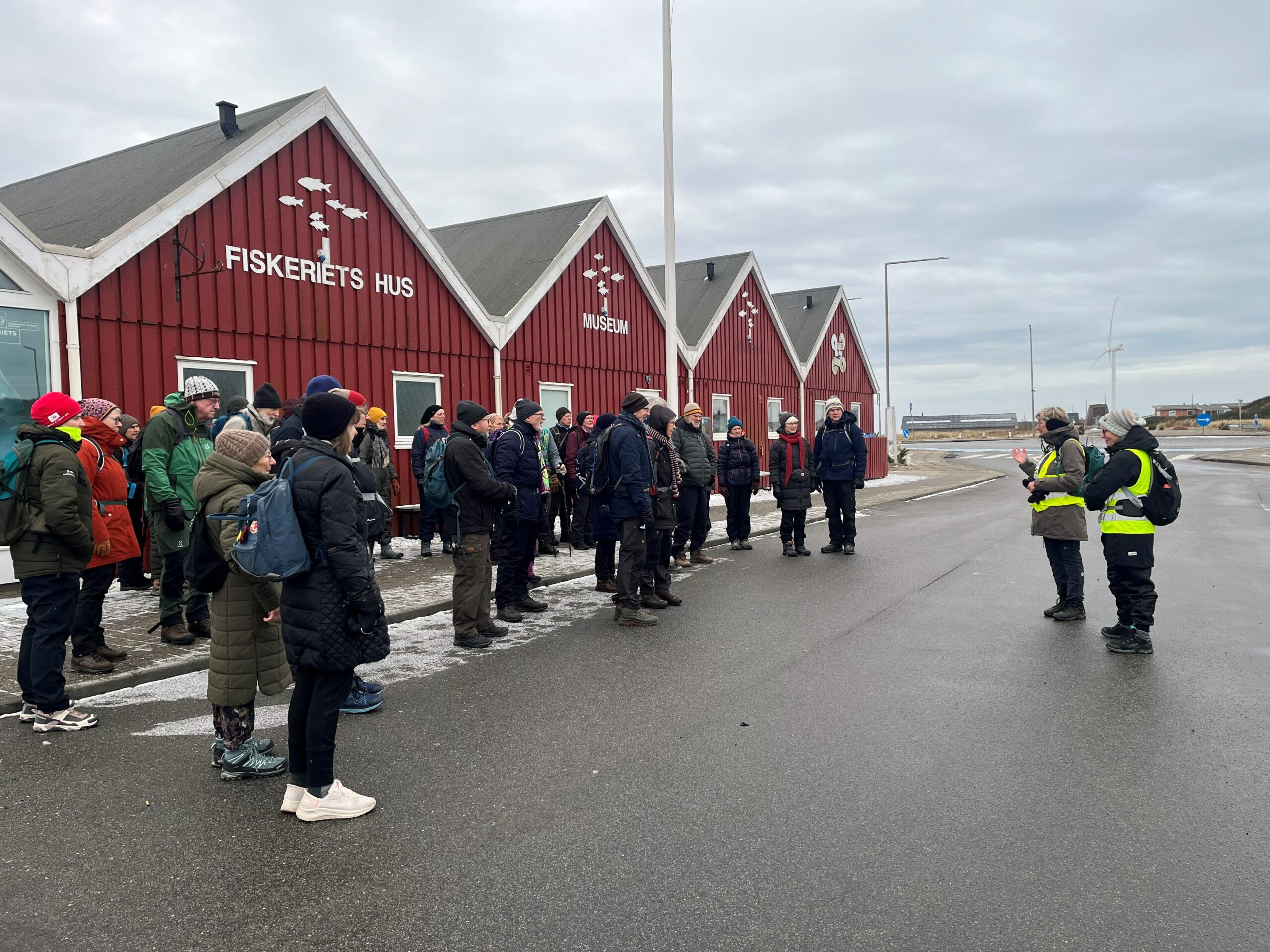 41 friske vandrere mødte op til dvl ringkøbing-skjern afd. Tur Hvide Sande gennem 4 verdenshjørner. Turen gennem tyskerhavnen og rundt om kabelbanen var ny for mange – smuk isbelagt fjord og med vinden i ryggen. Havet viste sig også fra sin smukke side, men modvinden hev lidt i lungerne. Efter en tur på toppen af troldebjerg, var der læ at finde til frokosten. Efter frokost gik vi mod syd langs fjorden og videre ned til havet, hvor vinden nu var i ryggen, der blev kigget efter rav og solen tittede frem. Til slut kunne vi beundre de store skibe i havnen, inden vi var retur ved fiskeriets hus. Godt 14 km gav røde kinder og lidt trætte ben.